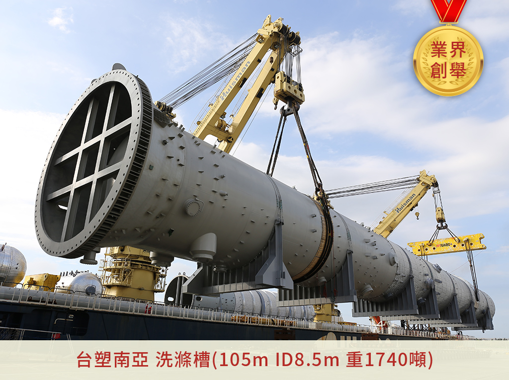 歷年來參與的搶灘駁運實績,包含國內各主要發電廠之大型發電機組設備、超高大型卸煤機、石化廠大型槽體設備、離岸風電機艙組、天然氣接收站興建工程等。主要承運的貨物類型